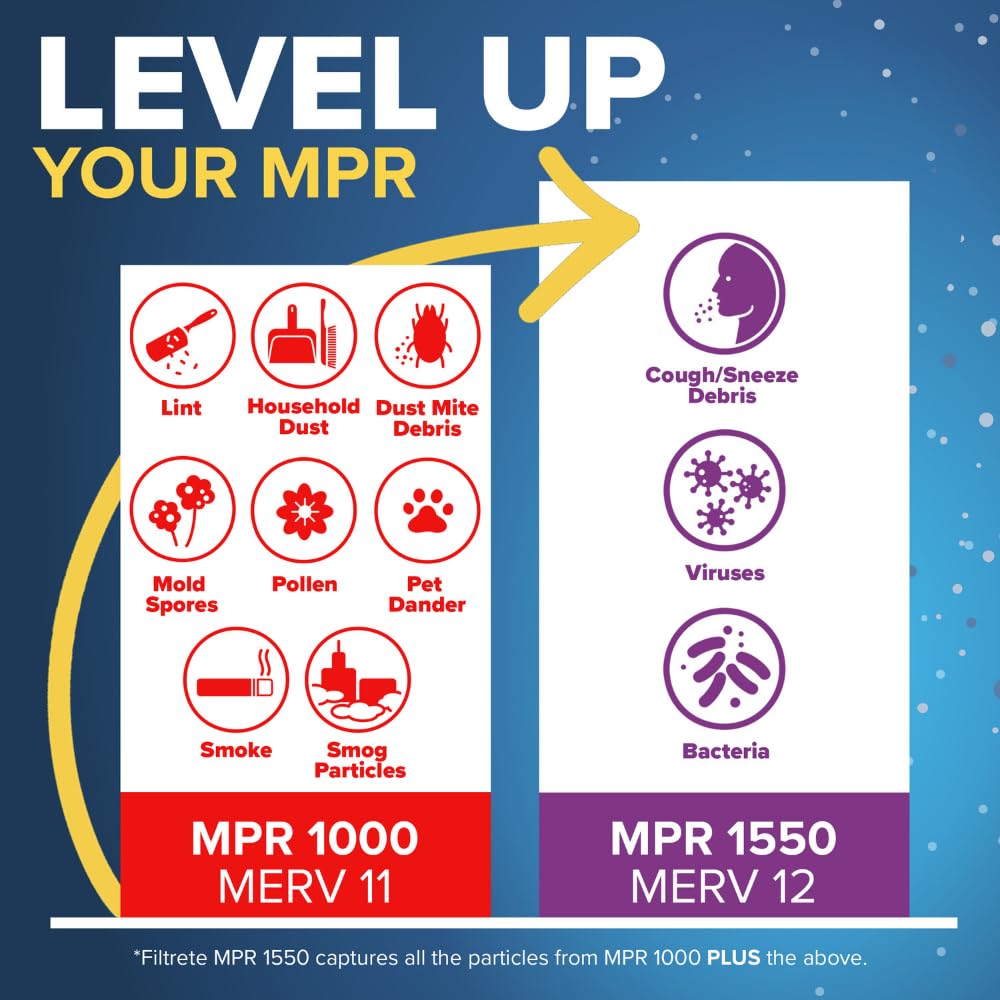 Filtrete AC Furnace Air Filter, MERV 11, MPR 1000, Micro Allergen Defense, Electrostatic Air Cleaning Filter, 4 Pack