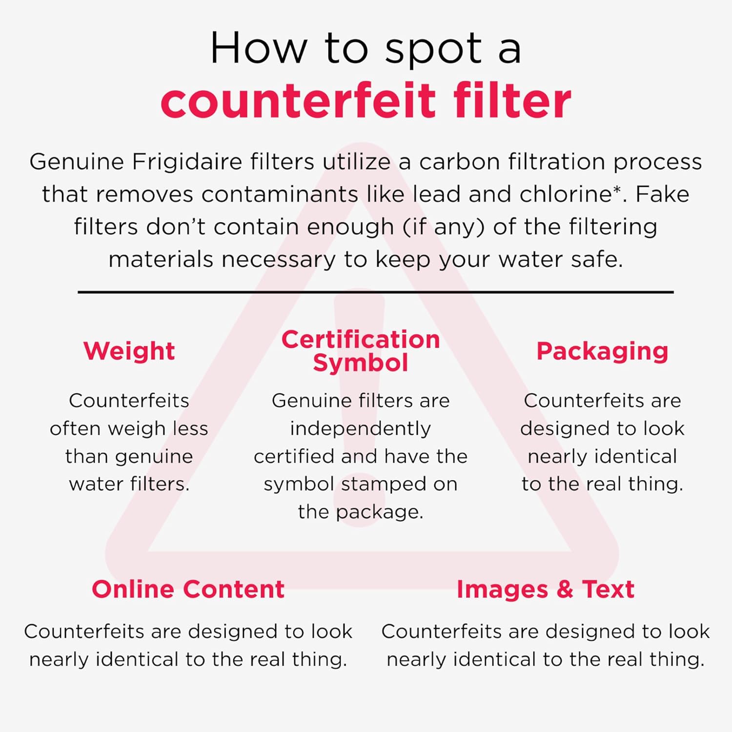 Keep safe, great tasting water flowing with PureSource Ultra II water filters — EPTWFU01 reduces up to 99% of contaminants, cuts back on plastic and saves the cost of bottled water. NSF and WQA certified. Look for our berry-colored design with our new Genuine Filters seal on the package to know for certain your filter is authentic and sold by Frigidaire. Frigidaire Genuine Filters – the smarter, safer choice.